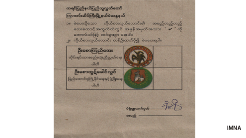 IMNA: The Mudon Township Election Commission (TEC) has begun to count the votes. The TEC was seen carrying three bags: one for the People’s Assembly, one for the National Assembly, and one for the Region/State Assembly. All three bags, along with the bag of pre-votes from Mudon were mixed together in one bag and counted at the Township Peace and Development Council (TPDC) office.