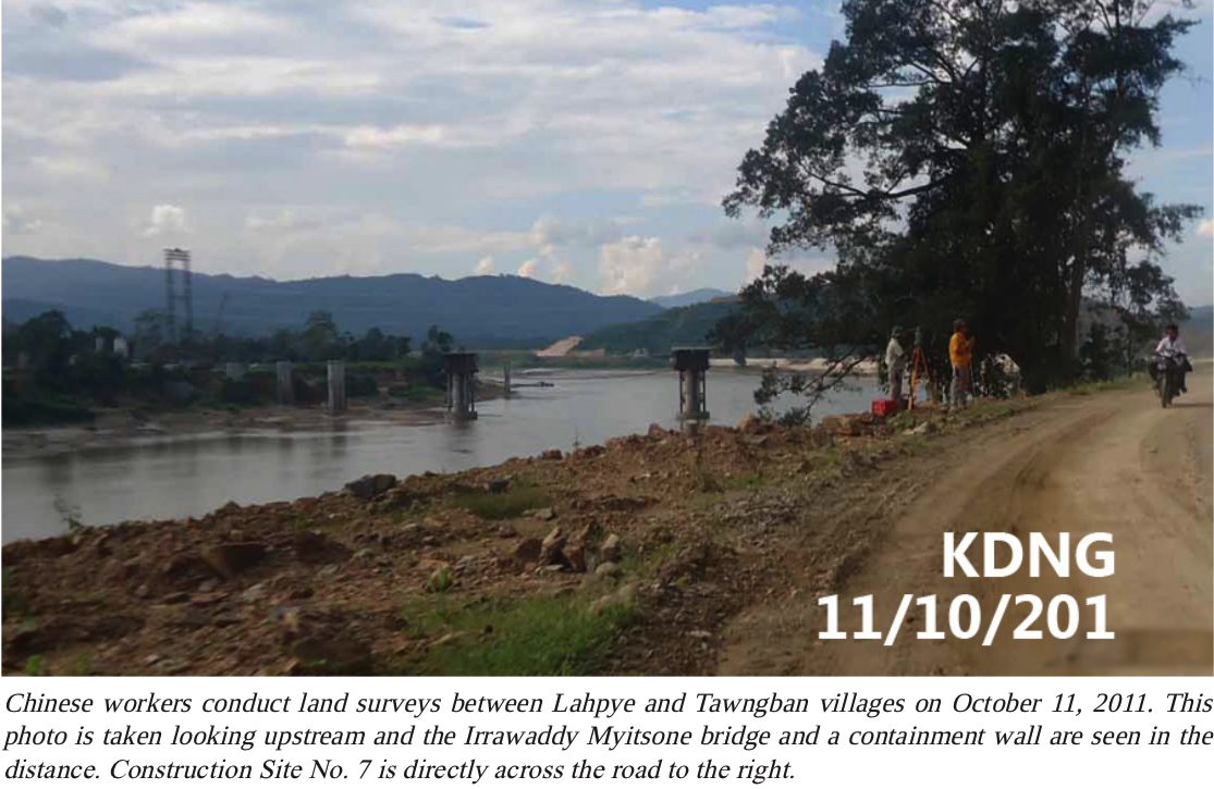 As recently as 11 October, Chinese workers were still carrying out land surveying work south of the dam site and were continuing construction of a supply road linking the Myitsone dam project area to the Chinese border town of Tengchong.