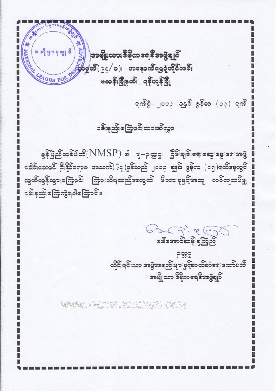 Letters were sent by the Mon Democracy Party, Mon United League, and the Mon Youth Friendship Network. Many ethnic armed groups like the Karenni National Progressive Party, Pa’O National Liberation Organization, and Arakan Liberation Party also sent formal messages.