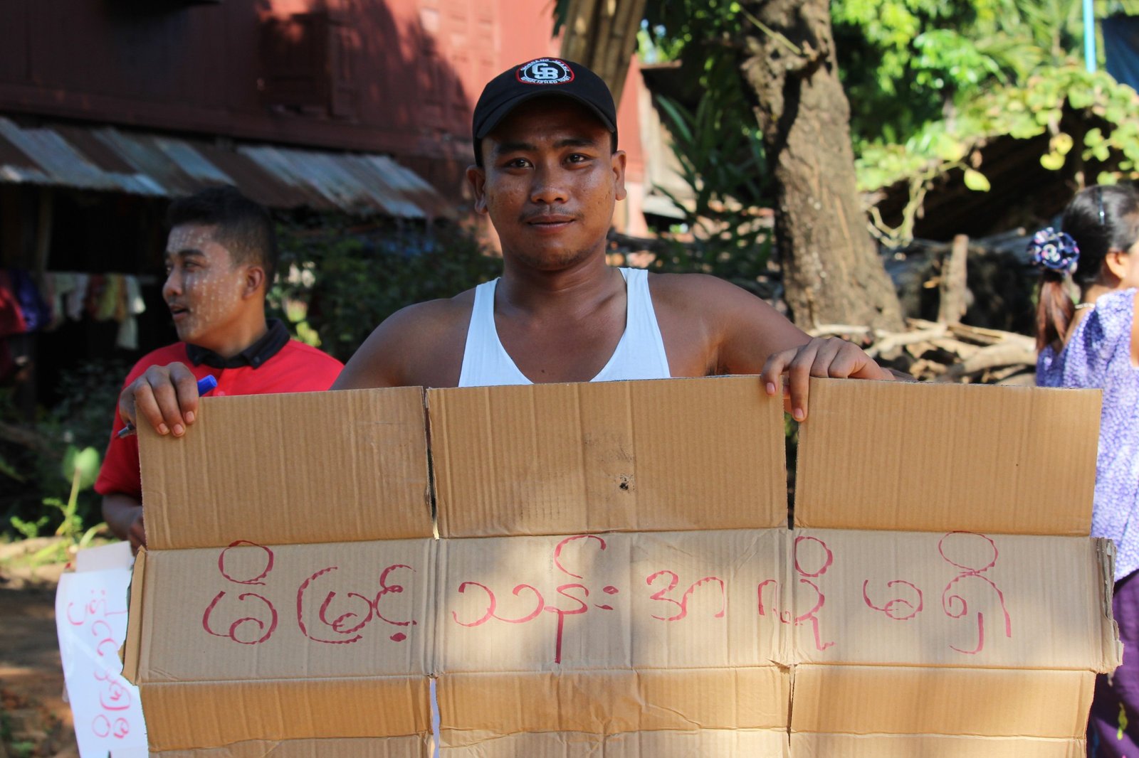 The protests occurred during AMDP’s campaign in Anndin Village, Parlian Region,Ye Township, where signs reading “No Mi Myint Thant” were written on papers held by local and set up.
