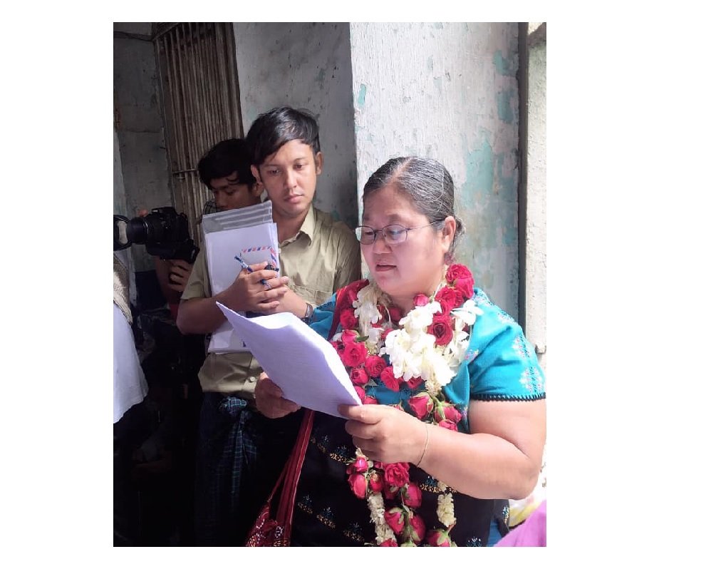 Naw Ohn Hla has been temporarily detained at Inn Sein prison and appeared in Kyauktada Township court on Friday. More than 300 Karen people assembled in the area. There will be a trial on October 2nd.