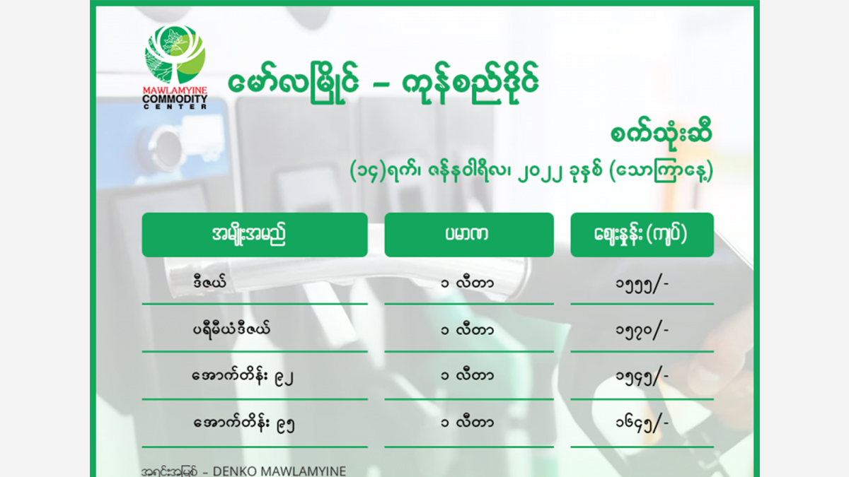 | Premium Diesel | 1,530 Kyat | 1,550 Kyat | 1,570 Kyat |