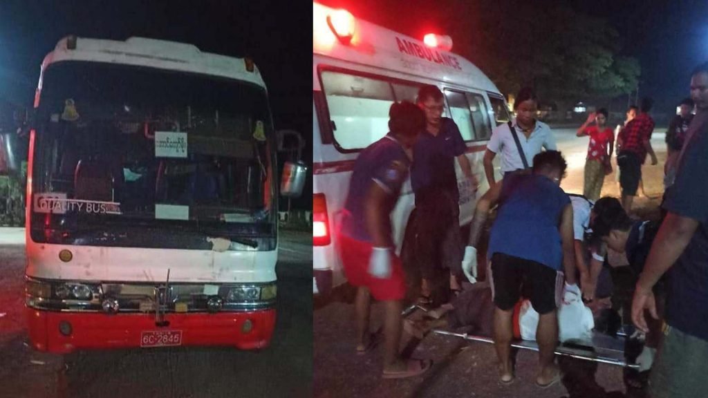 About 40 passengers were on board the “Aung Kyaw Moe” vehicle when it hit the mine.