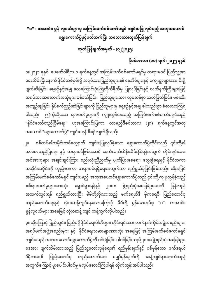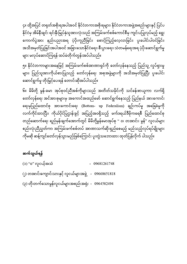 According to the statement, every election organized by the military throughout history has served only to maintain its power, create division among ethnic groups, and manipulate the international community. The upcoming election, they said, is intended to avoid accountability for war crimes and to revive the 2008 Constitution to legitimize military rule.