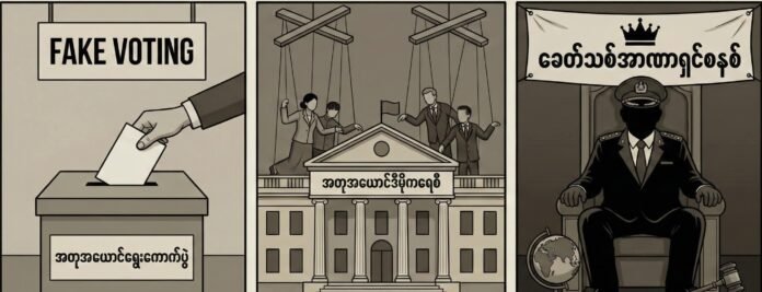 In 2026, a sham democratic system will be led by the former military-backed USDP, made up of retired military personnel who win seats through the election. However, under the 2008 Constitution, the current military dictator or coup leader, Min Aung Hlaing, could become president. Consequently, a government led by Min Aung Hlaing or another senior military general will establish a new-era authoritarian system under the guise of democracy within the framework of the 2008 Constitution.