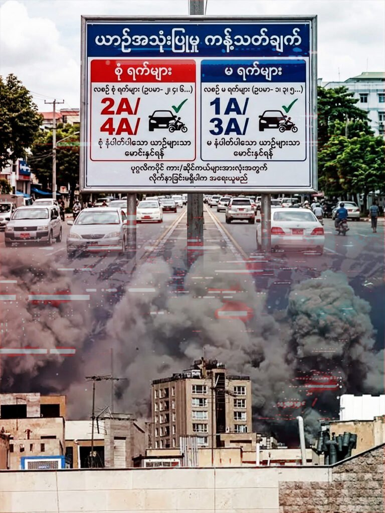 To address the situation, the authorities announced a vehicle restriction policy starting March 7, requiring private vehicles to follow an “odd–even” license plate system. This approach resembles the resource rationing policies practiced during the 1980s Myanmar Socialist era.