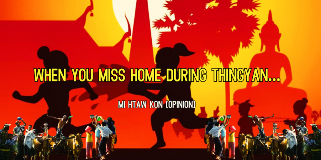 After more than three years away from home during Thingyan, I often hear those familiar sounds and recall those scents in my mind from afar. I can still picture the small crossroads in front of my house.