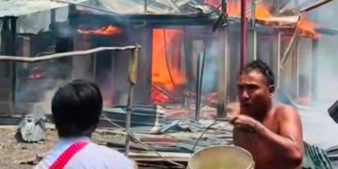 The fire broke out at around 10:30 a.m. in an unoccupied house, reportedly starting from a solar power connection. It quickly spread to a nearby house while most villagers were away at the ceremony held outside the village, a local man said.