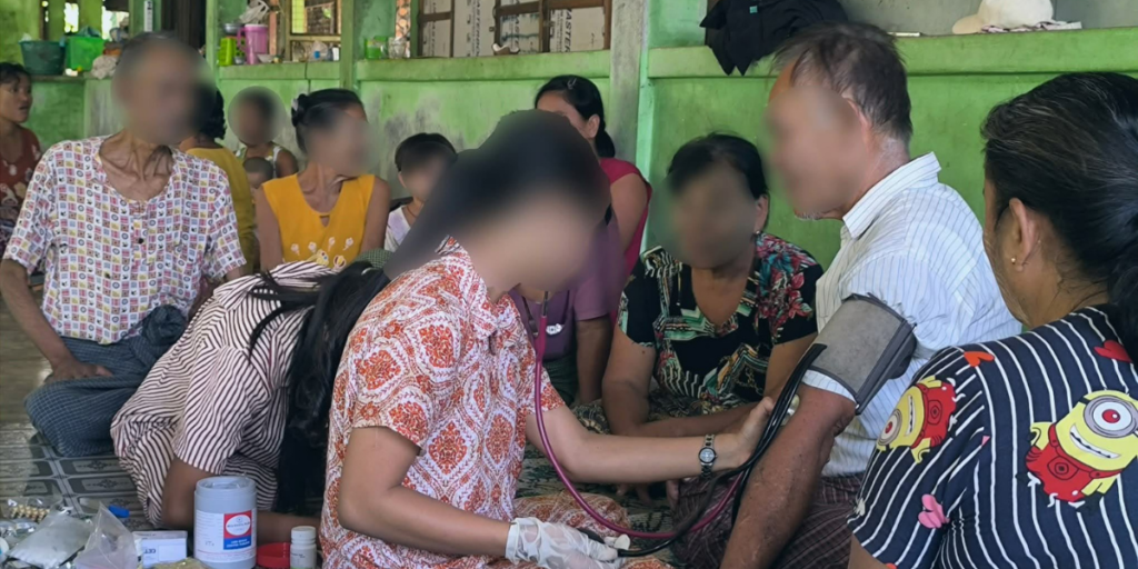 Currently, around 500 displaced people from 12 villages in Thayetchaung Township are receiving healthcare assistance from aid groups, resistance forces and local organisations.